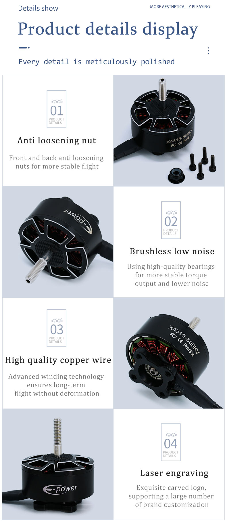 E-Power X4315 4315 400KV/500KV/600KV Brushless Motor 8S/6S 15inch FPV Long Range Drone DlYPart-New Launch Large FPV Motor Parts