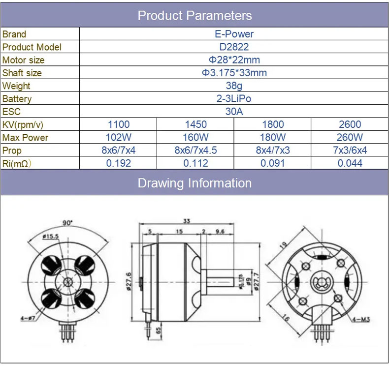 Motor size (mm) : Ф28*22mm