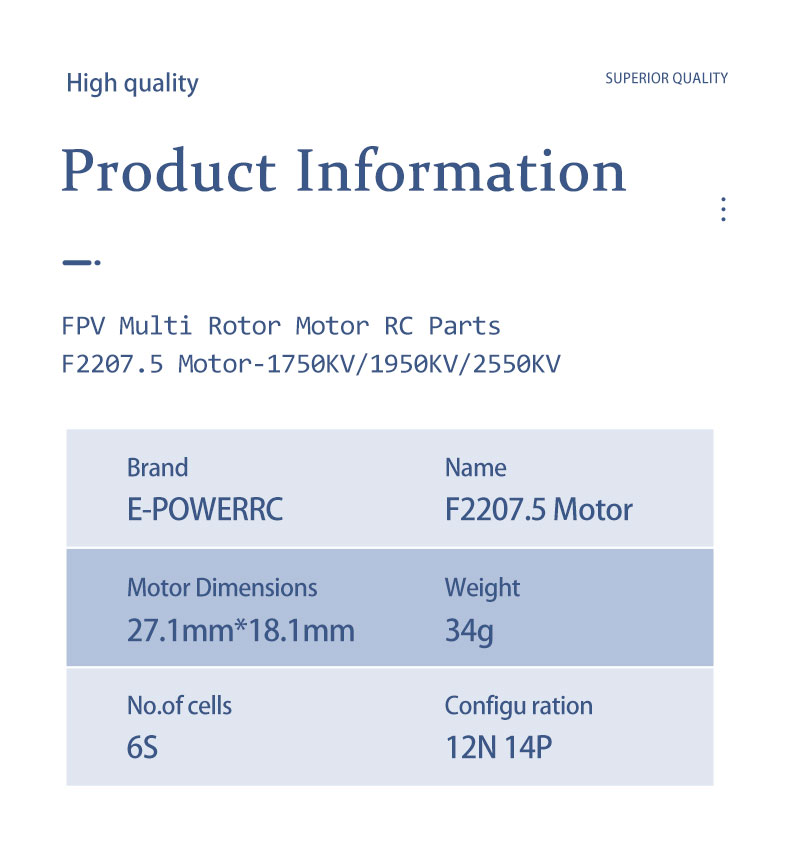 E-power F2207.5 2207.5 1750KV 1950KV 2550KV 4-6S Lipo Brushless Motor Colorful Green For FPV 5inch Aircraft Drones Motors Parts