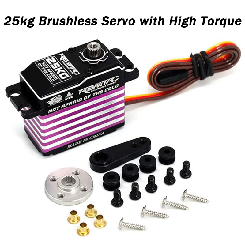 RevvitRC Magnetically Programmed Metal Brushless Servo 25KG Torque Waterproof Fast Speed For 1:8/10 Climbing Barrow Robots