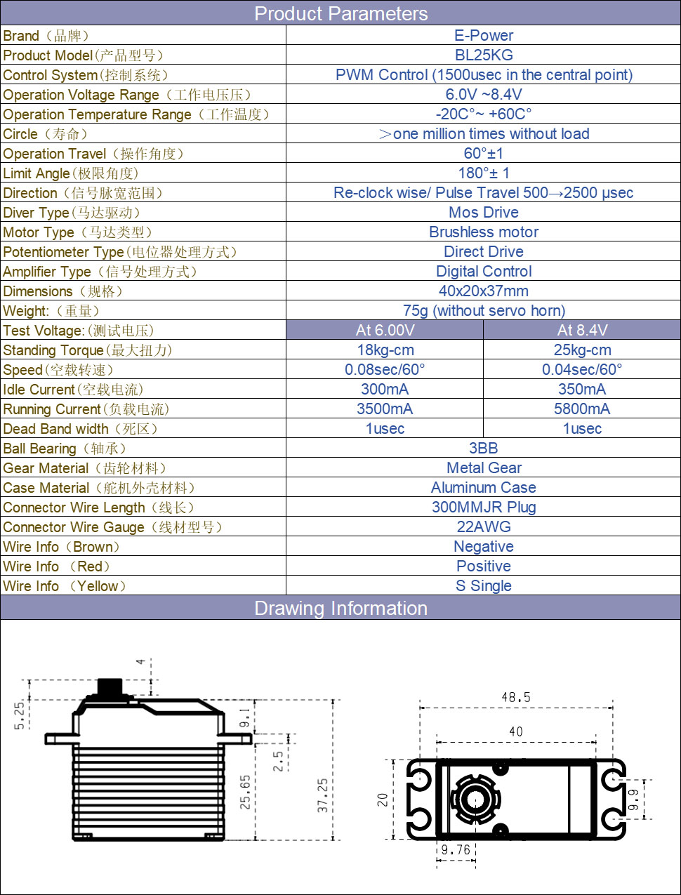 3.Metal Gear Brushless Servo: Equipped with stainless steel gears, full CNC aluminum housing, low noise, light weight, double ball bearings. Effectively avoid the phenomenon of "sweeping teeth", to ensure that long time high frequency operation is still smooth and stable.
