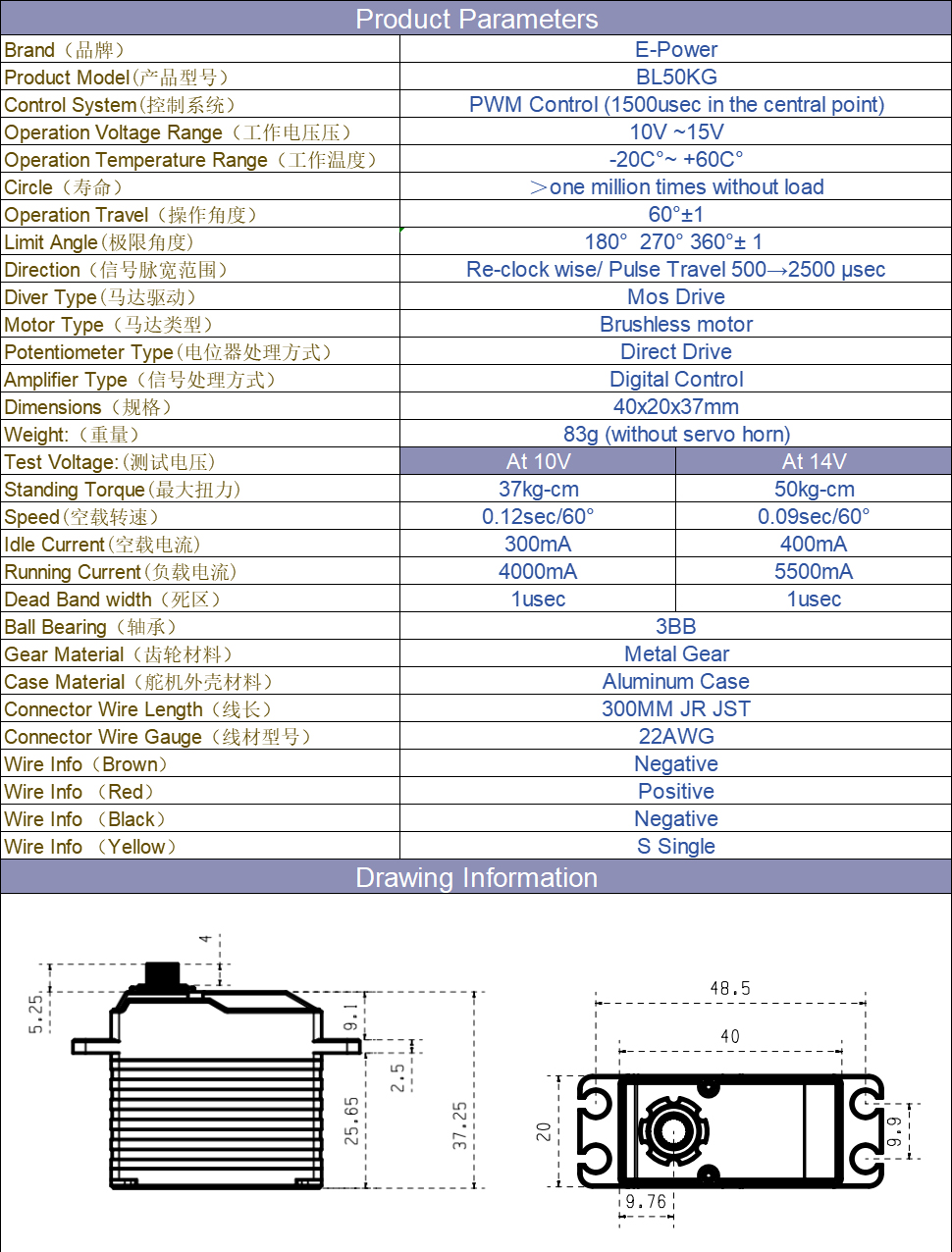Dimension: 40x20x37mm