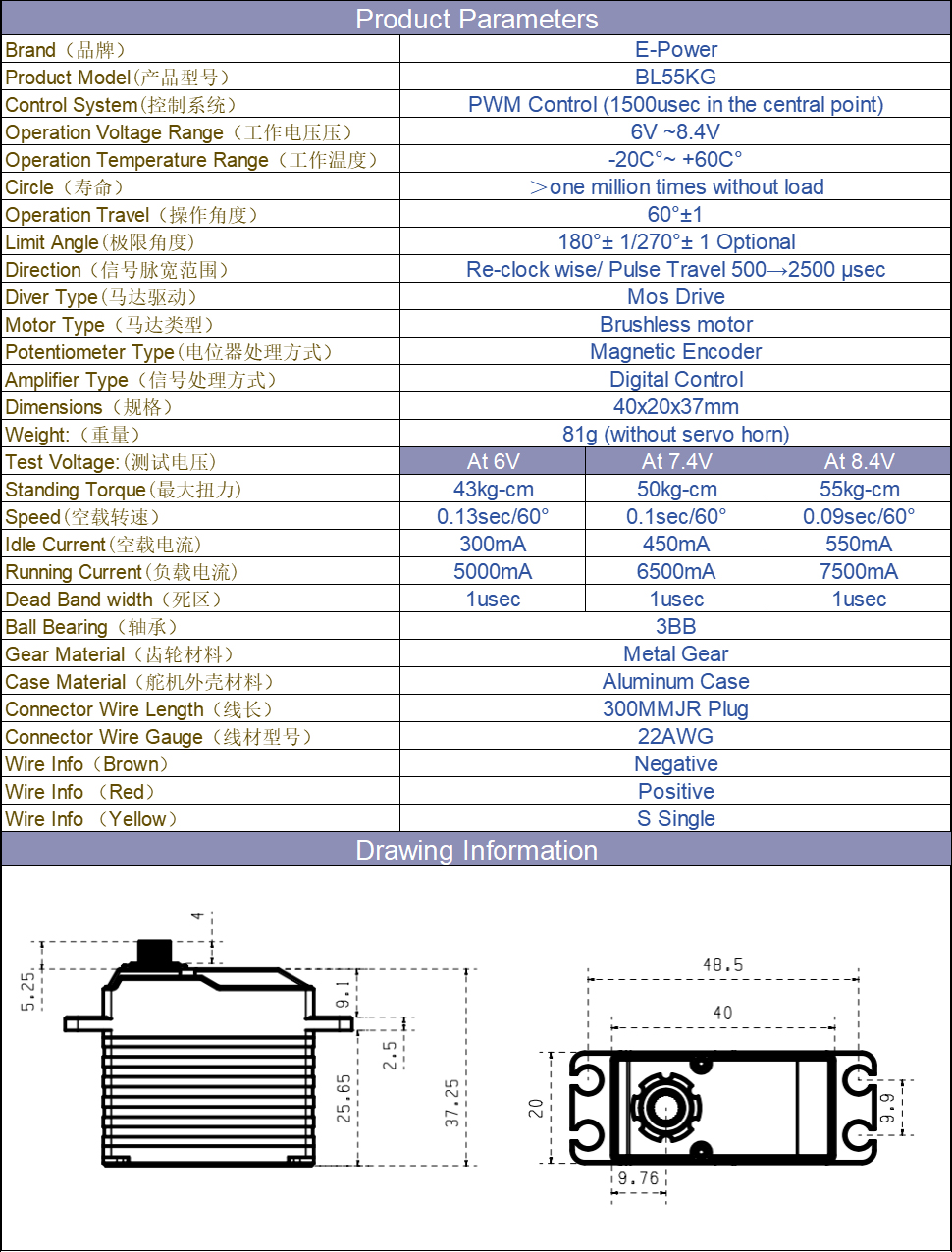 Dimension: 40x20x37mm