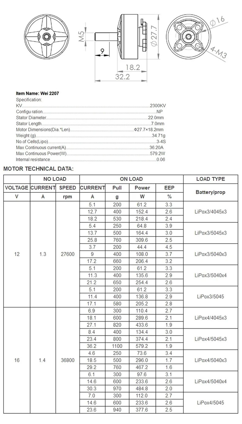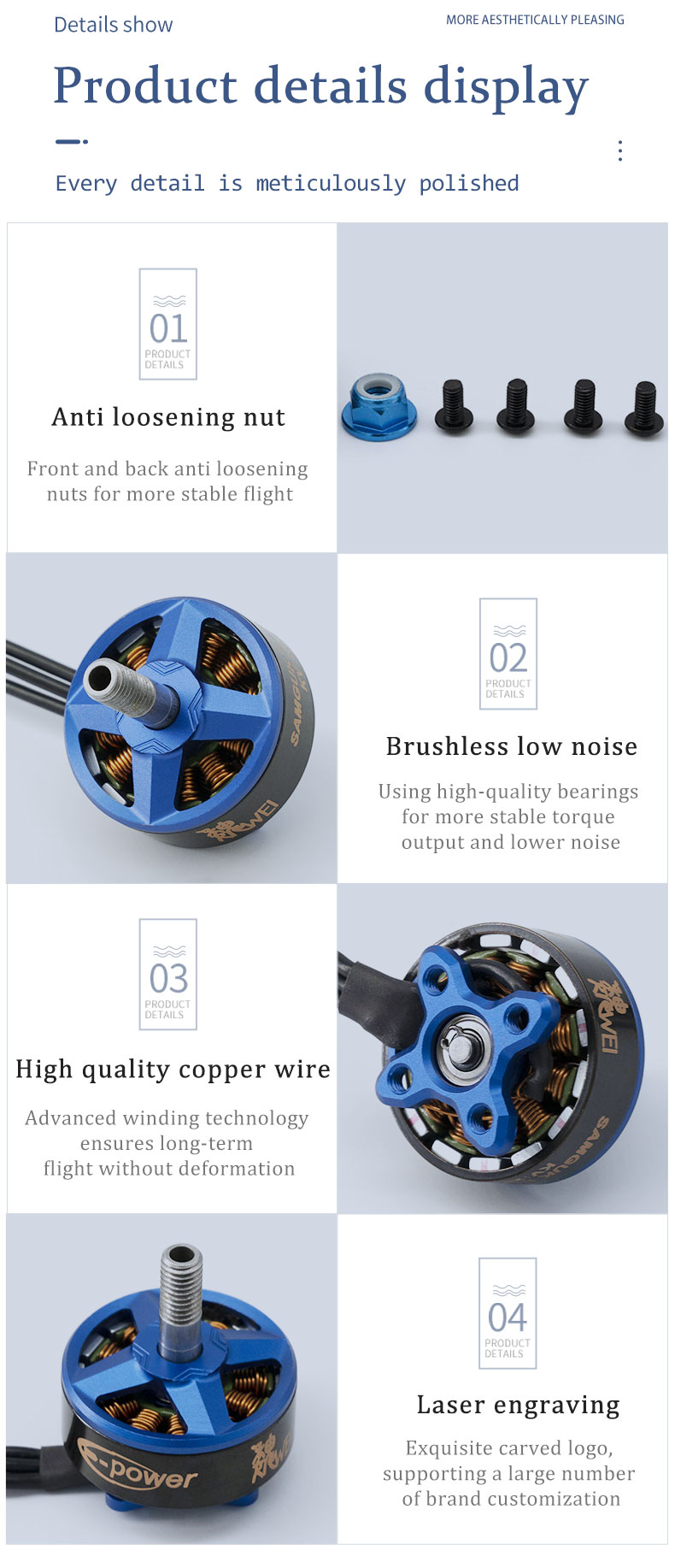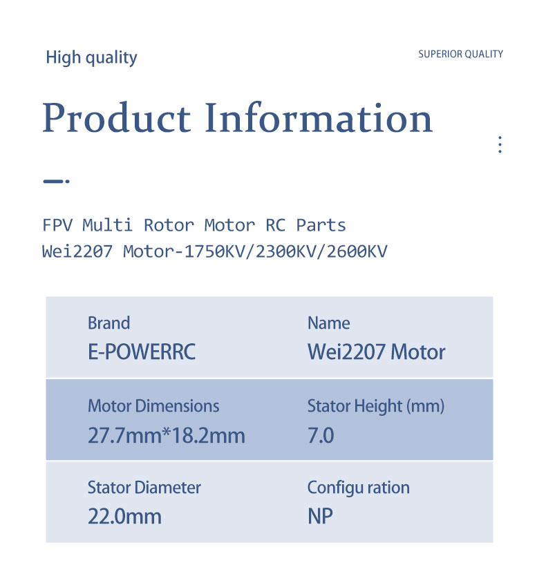 E-Power FPV Multi Rotor Motor WEI2207 2300KV 2600KV Suitable For Fixed Wing Helicopters And Helicopter Aircraft