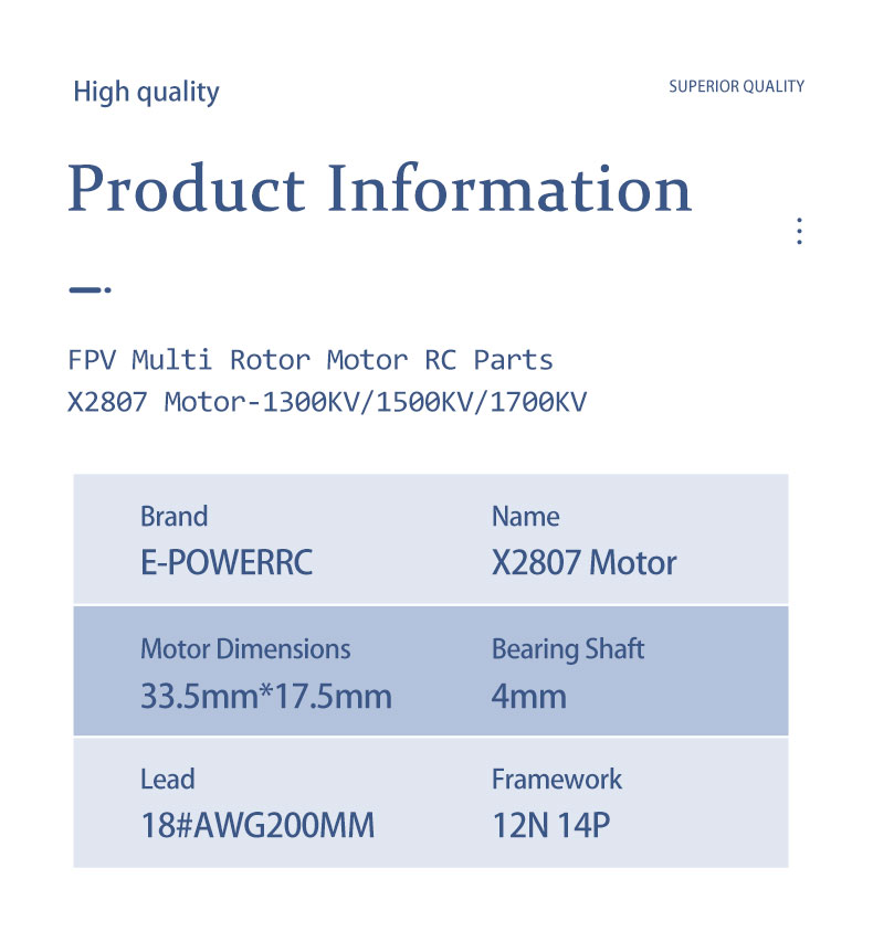 E-Power X2807 Motor 1300KV 1500KV 1700KV FPV Multi Rotor Motor Suitable For Fixed Wing Helicopters And Helicopter Aircraft