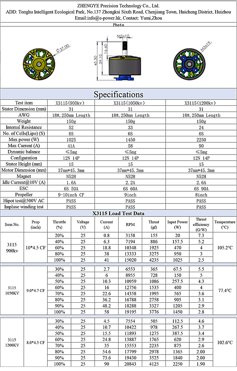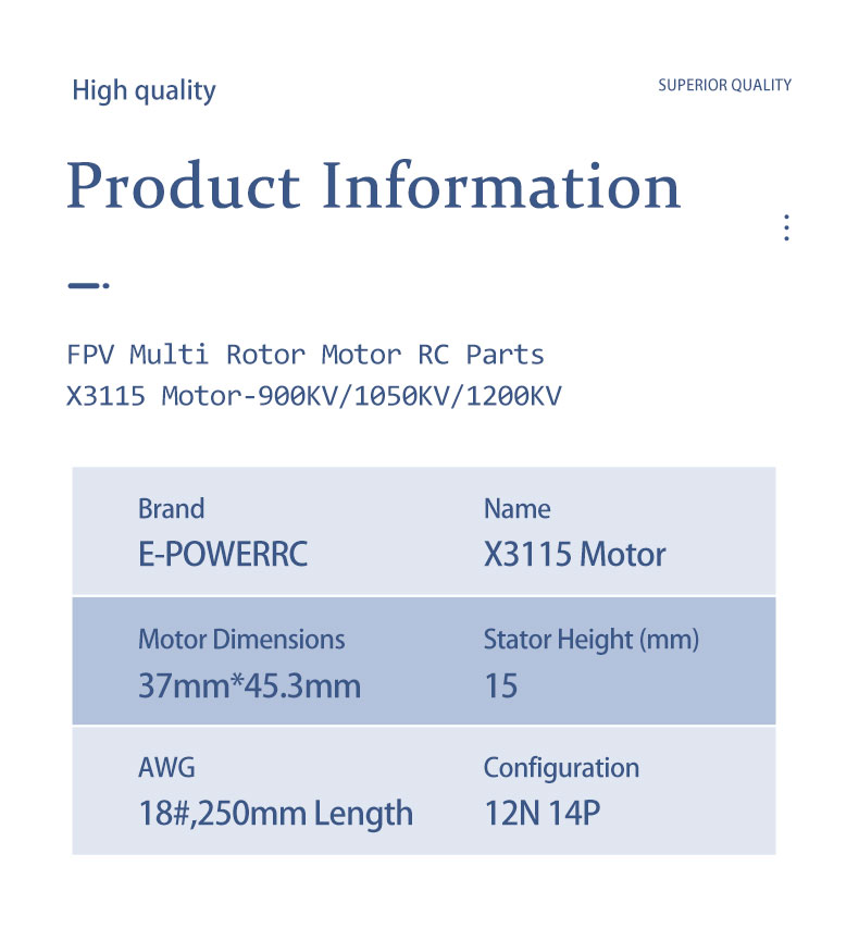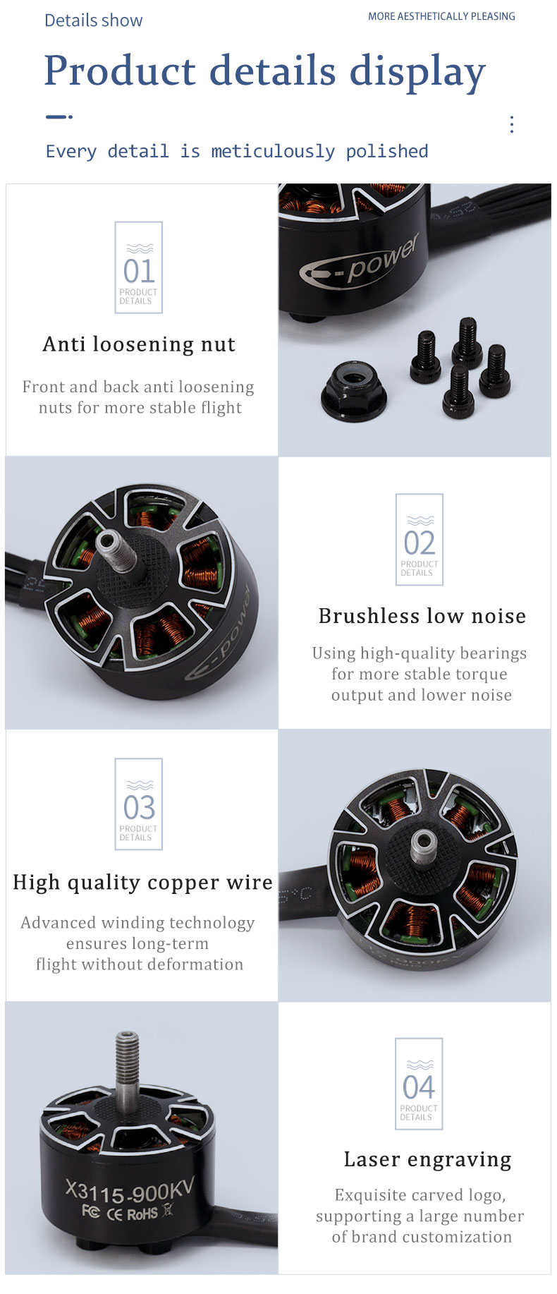 E-Power FPV Brushless Motor X3115 900KV 1050KV 1200KV Suitable For Helicopter Aircraft And Fixed Wing Helicopters
