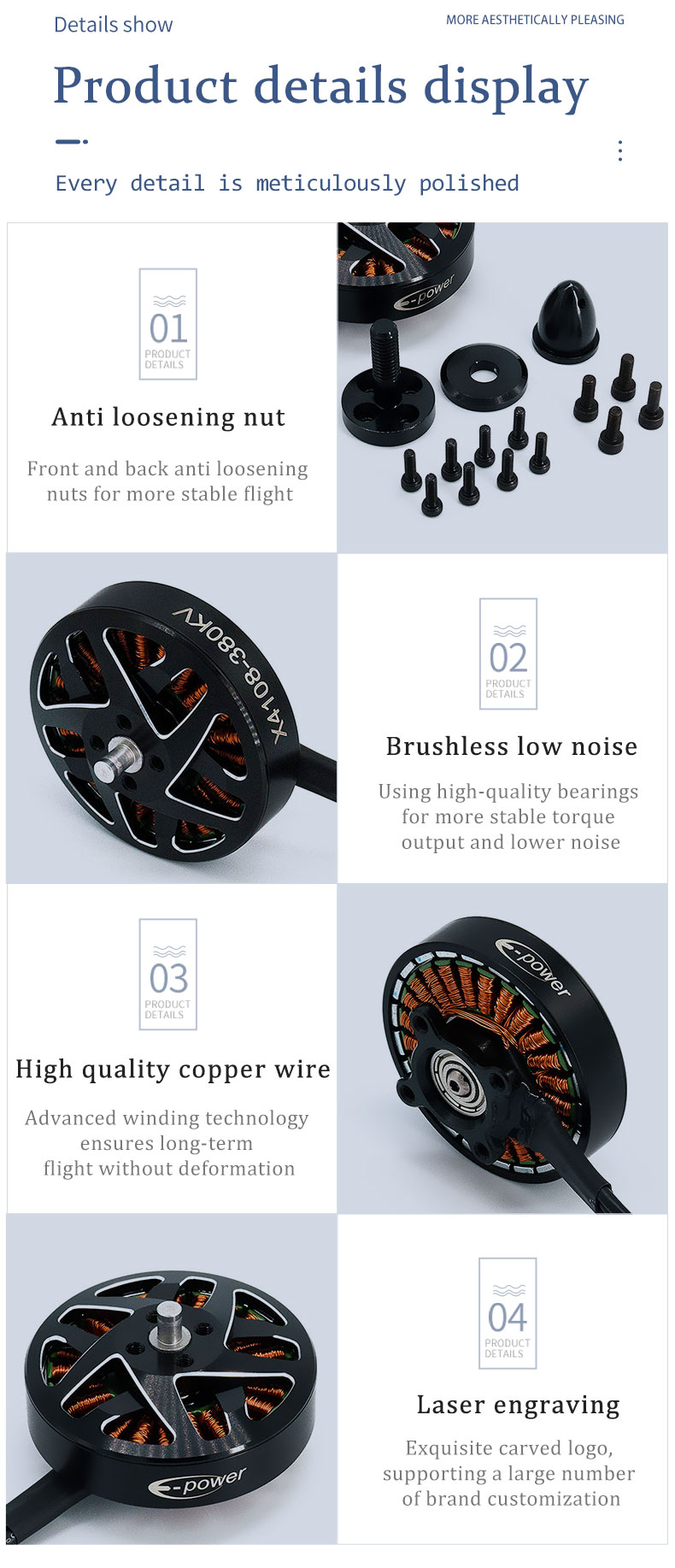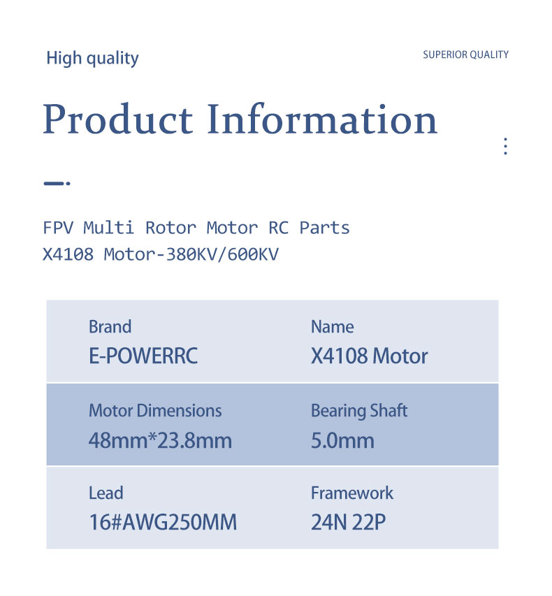 E-Power X4108 4108 380kv/600kv Motor Multi Rotor Helicopter Metal Parts Large Torque Low Noise RC Brushless Motors Toy Accessory