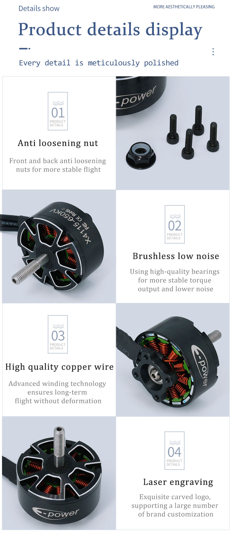 E-Power Motor X4115 400Kv/650Kv 3-8S Brushless Motor, Suitable For Remote Control Car Parts And Toys