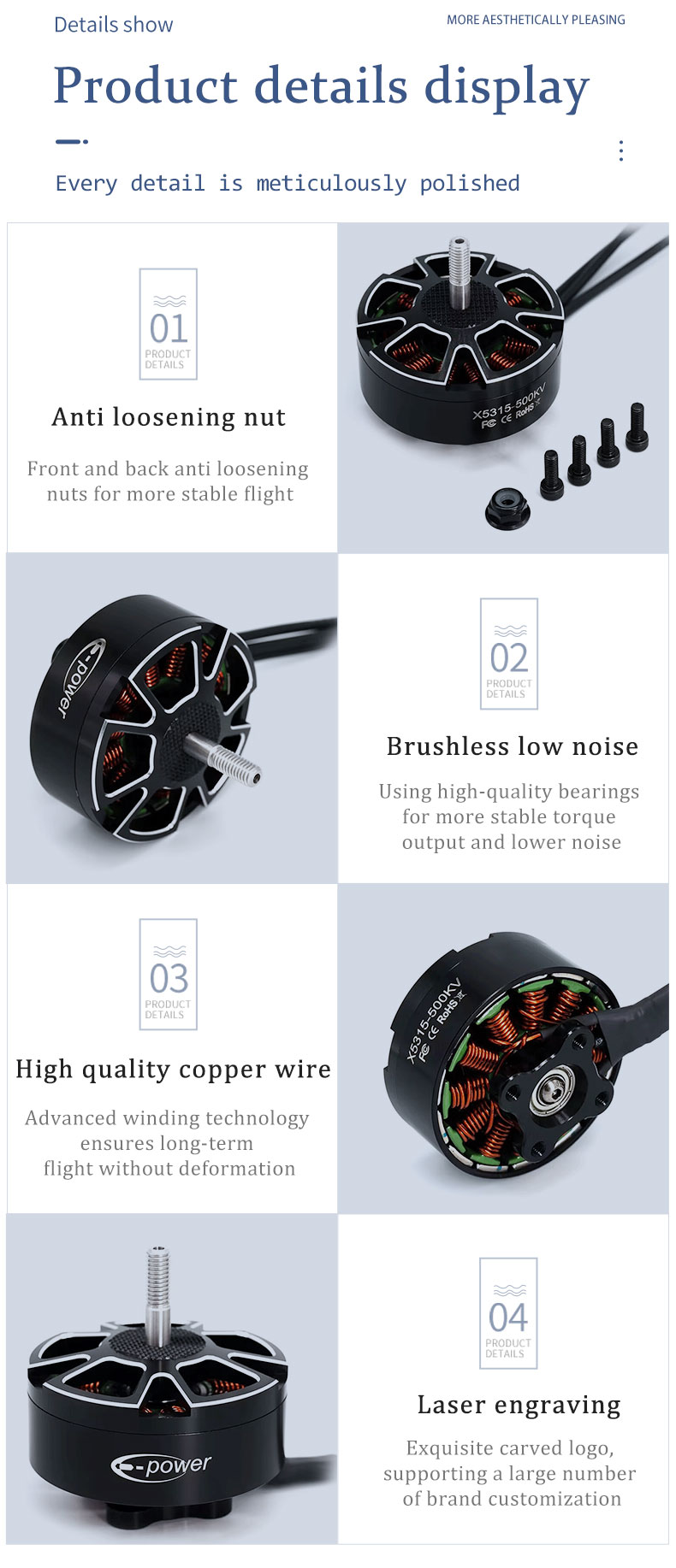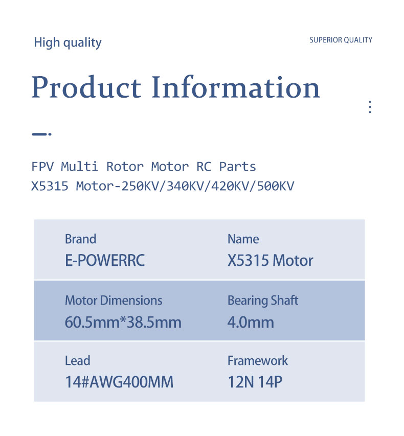 E-Power X5315 5315340KV/420KV/500KV Brushless Motor 4-8S 15inch FPV Long Range Drone DlYPart-New Launch Large FPV Motor Parts